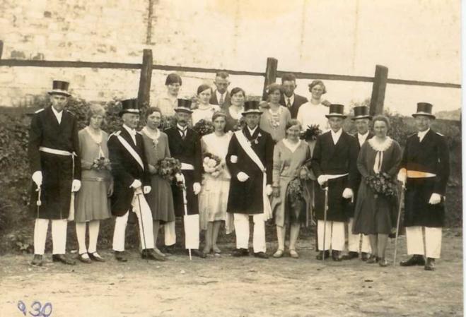 Vorne: Bernhard Funke, Frau X, Ferdinand Witthaut, Gertrud Pieper, Heinrich Hillebrand,